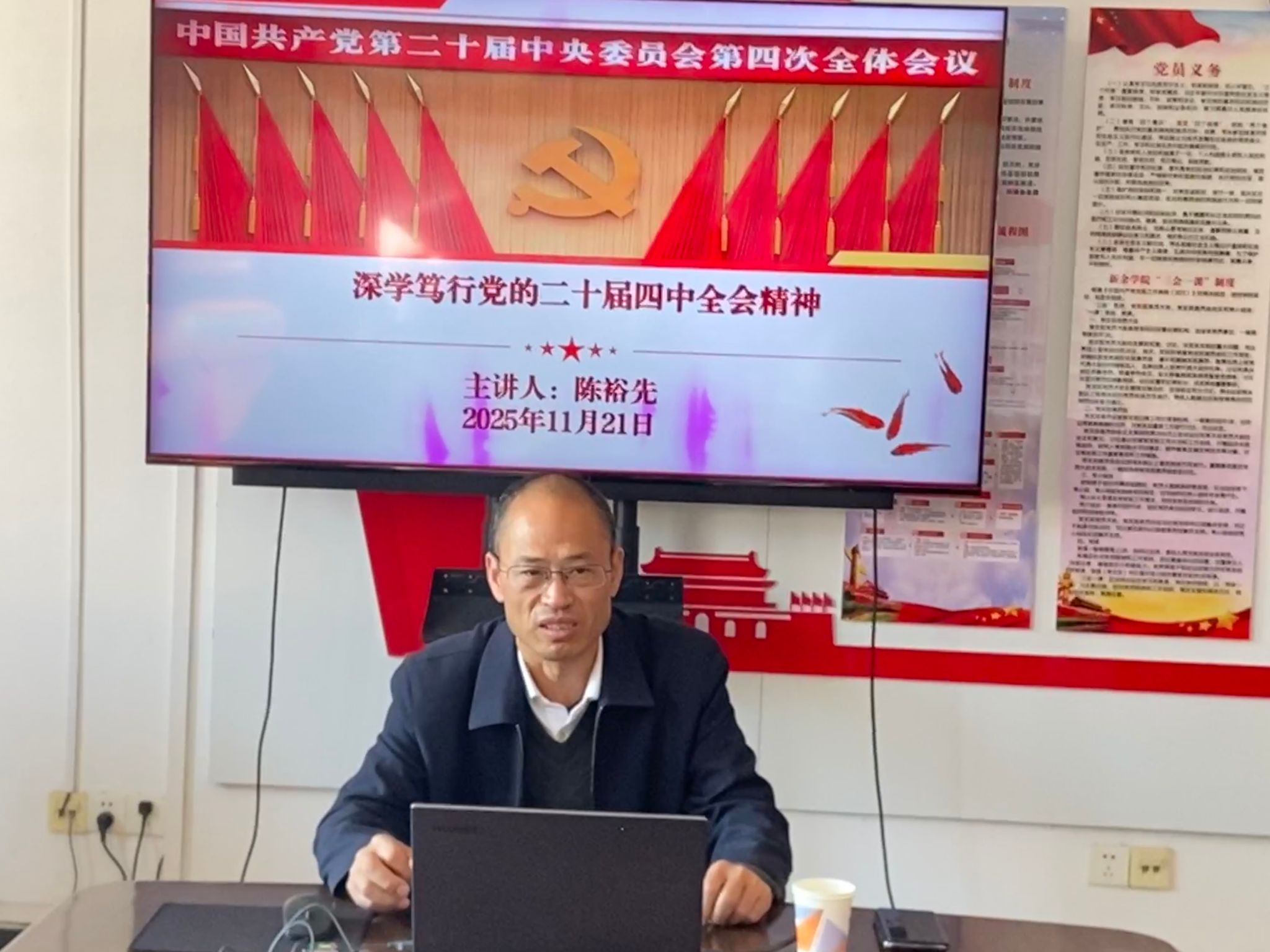 11月21日,校党委委员、副校长陈裕先深入数学与计算机学院,面向学院全体班子成员、辅导员及行政坐班人员开展党的二十届四中全会精神专题宣讲,推动党的二十届四中全会精神全会精神在学院落地生根。
