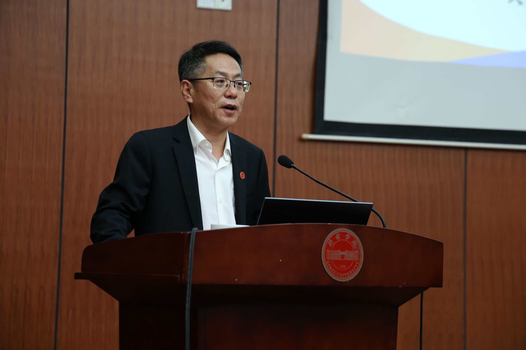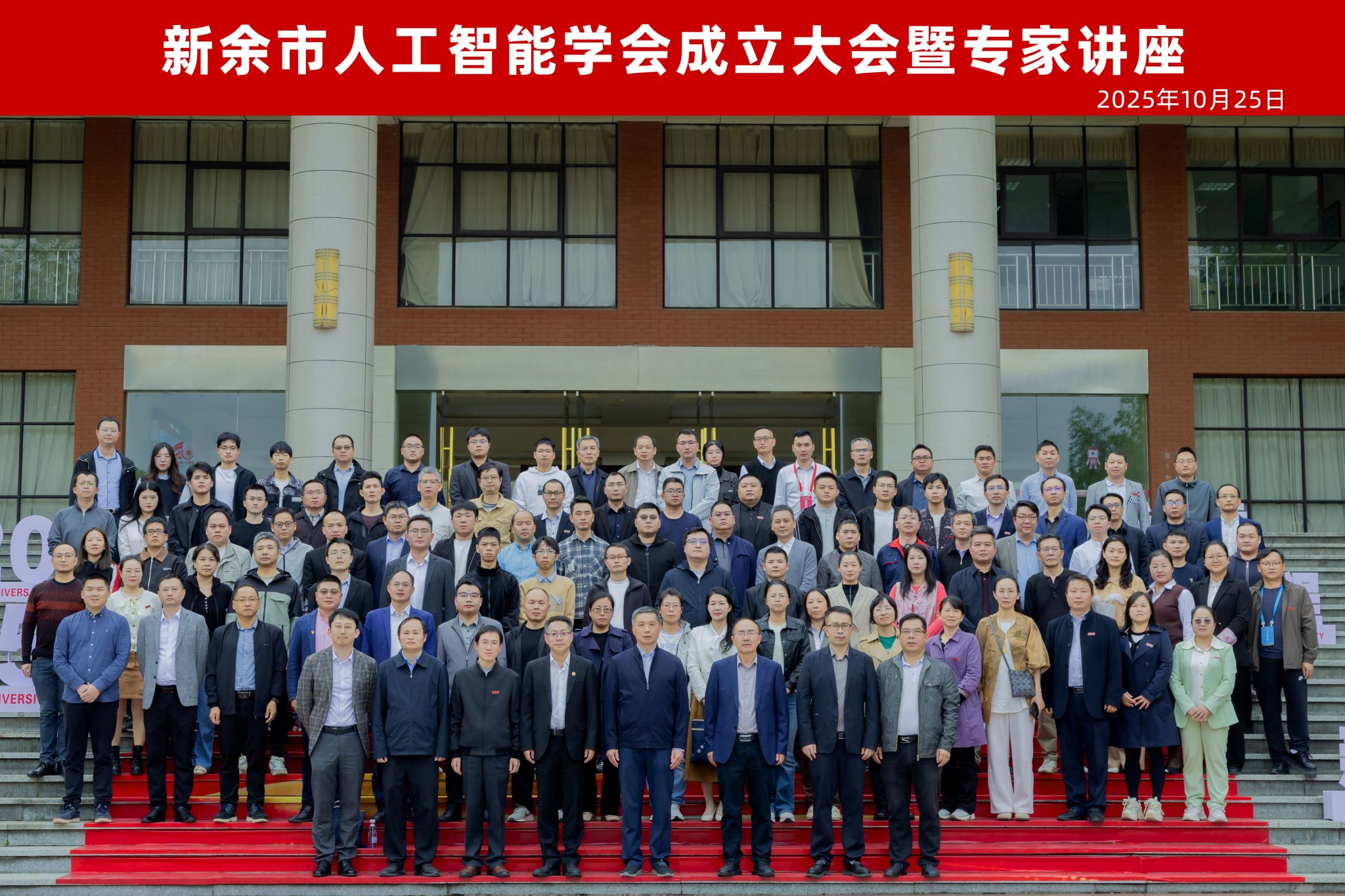 2025年10月25日,新余市人工智能学会成立大会暨专家讲座在新余学院行政楼一楼报告厅顺利举行。江西省人工智能学会理事长罗玉峰,新余市科协党组书记王岳峰,新余学院党委委员、副校长陈裕先,新余学院党委委员、副校长周书民,新余学院副厅级干部张发云,市科协、市科技局等相关政府部门代表,个人会员与单位会员代表,高校、科研机构、企业代表等130余人出席此次成立大会,见证新余人工智能领域这一重要时刻。大会以“智汇新余,AI启航”为主题,旨在汇聚新余人工智能领域智慧力量,搭建协同创新平台,推动AI技术与产业、教育深度融合。
