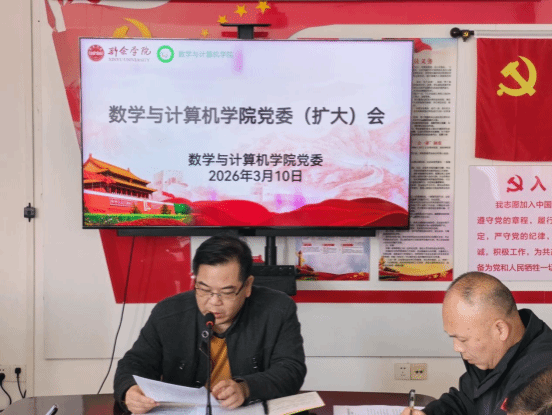 3月10日,数学与计算机学院召开党委(扩大)会,深入学习贯彻习近平总书记关于树立和践行正确政绩观学习教育的重要讲话和重要指示精神,认真落实党中央、省委部署和校党委要求,对学院开展树立和践行正确政绩观学习教育进行动员部署。会议由院党委书记刘志龙主持,院党委委员、各科室负责人、党支部书记和全体党员干部参加会议。